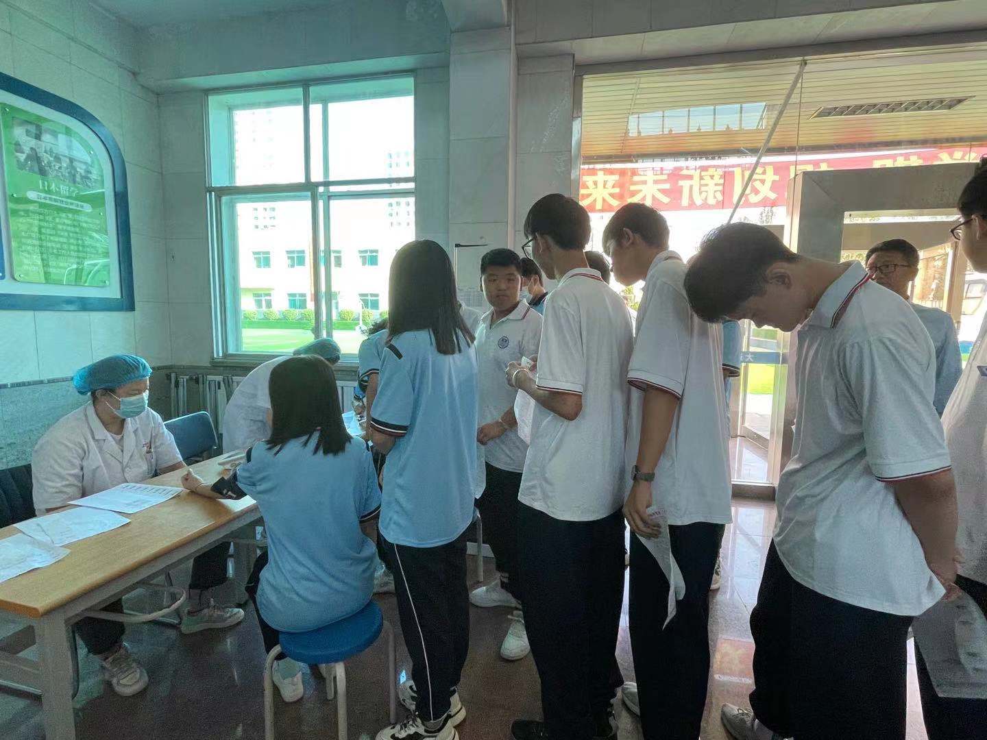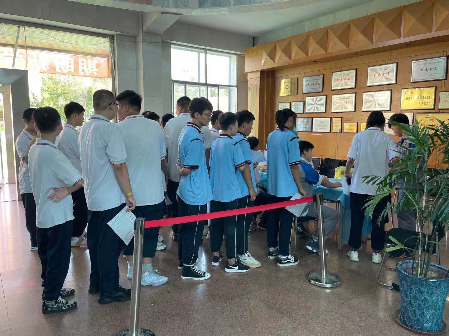 早上9點,在大連重工集團技工學校教學樓體檢區(qū)域,新生排起了長長的隊伍。新生以班為單位,分批次配合醫(yī)務人員進行了身高體重測量、血壓測量、血液采集、視力檢測、胸透等常規(guī)項目檢查。